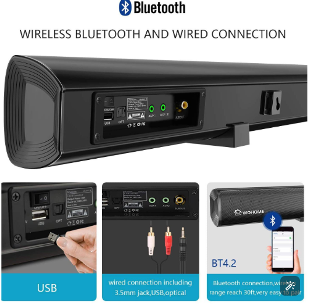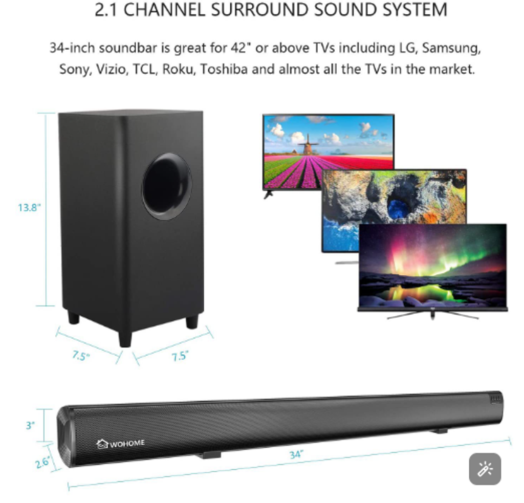 Combinação de barra de som potente com subwoofer